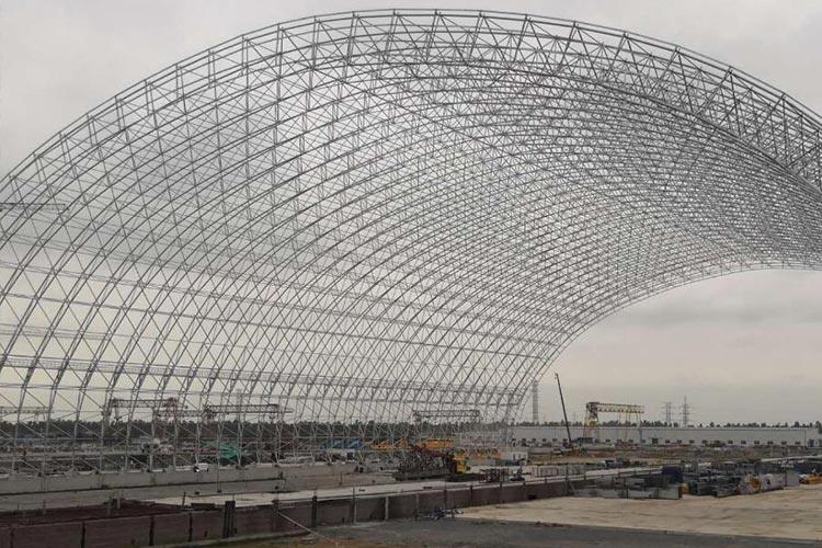 煤棚網(wǎng)架的使用可以減少煤的損失,從而保護(hù)環(huán)境;具有外形美觀大方,結(jié)構(gòu)合理,拆裝靈活,承重力強,安全可靠等特點